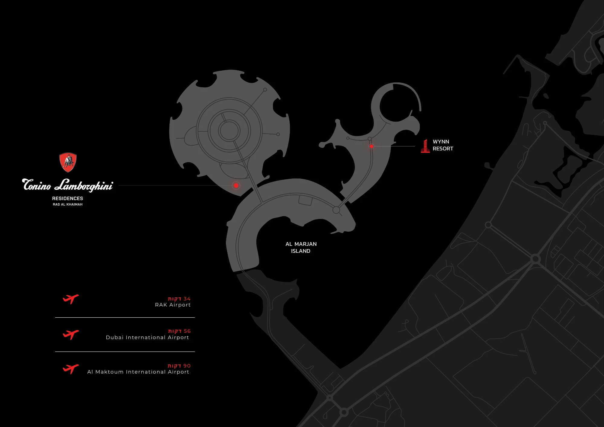 בהשראת האתוס של טונינו למבורגיני של אלגנטיות, סגנון ללא פשרות וחדשנות, טונינו למבורגיני רזידנסס RAK נתפס לא רק כבית מגורים אלא כ"הצהרה אדריכלית שבה תחכום איטלקי מתמזג עם היופי האלמנטרי של הים והחול. העיצוב מתרגם את קצב הגלים והדיונות לטרסות מדורגות ו"גני שמש", ומאזן בין בלעדיות לפתיחות באמצעות וילות פרטיות ואחוזות לצד מרחבים קהילתיים תוססים. בסופו של דבר, זוהי מורשת של אורח חיים איטלקי: ביטוי נצחי של זהות, שאיפה ושייכות לחוף ראס אל-ח'ימה. עיצוב הפנים משלב קווים נועזים, עיצוב איטלקי עם מרקמים טבעיים ונגיעות מתכתיות מעודנות. הפרופורציות טרסות בעדינות כדי לשמר את הנופים ולרכך את האור לאורך היום.